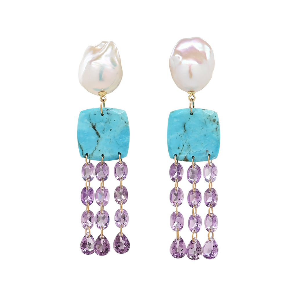 Baroque pearls with turquoise and faceted turquoise drops