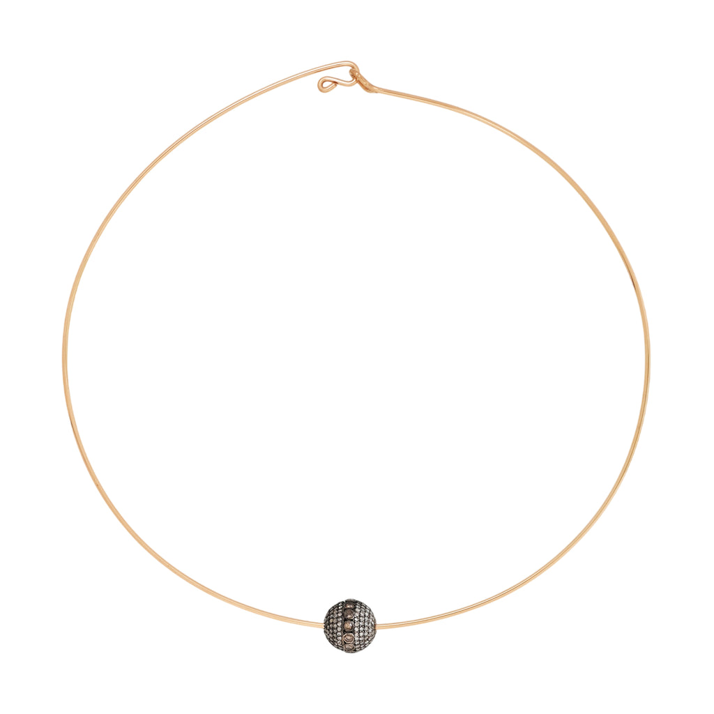 Diamond encrusted oxidized silver bead on a gold filled wire necklace