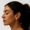 One natural diamond huggie and one gold huggie crafted in 14k yellow gold