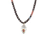 Crystal quartz shell charm with a pink sapphire gemstone in 18k yellow gold