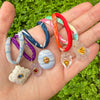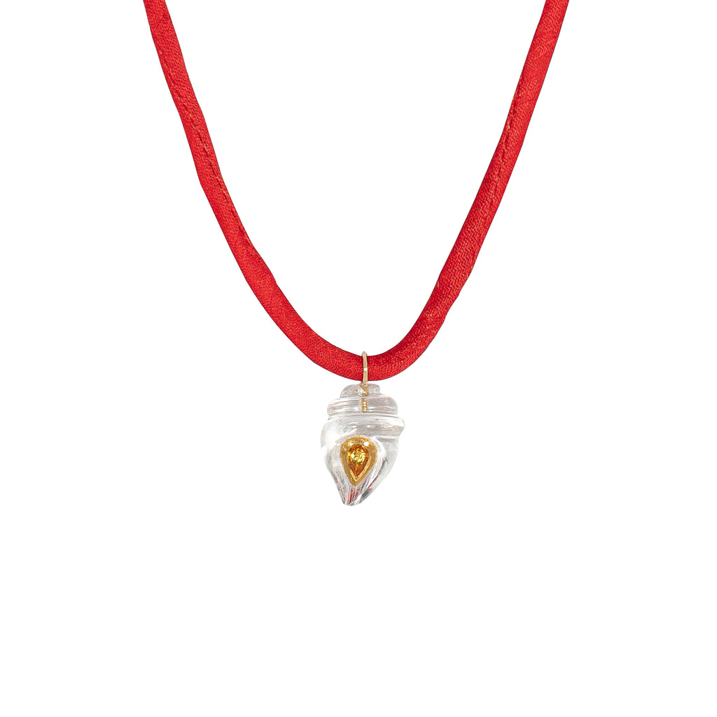 Crystal quartz shell charm with an inlaid orange sapphire in 18k yellow gold
