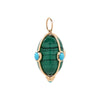 Crafted in 14k yellow gold with smooth malachite and turquoise cabochons